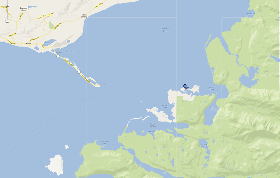 Located in Kachemak Bay, 6 miles across from Homer, Alaska